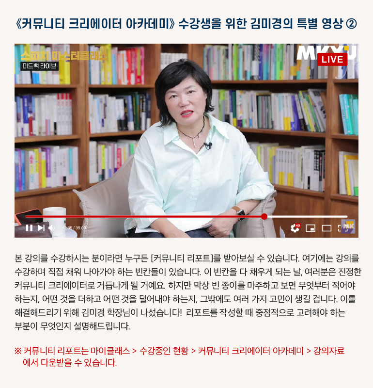 16. 김미경의 특별 영상 ② 커뮤니티 리포트 작성법 및 피드백 23분
