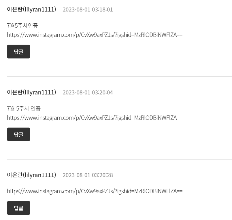 7월 [김미경의 미라클 모닝] 인증 게시판에 댓글이 업로드가 안됩니다.