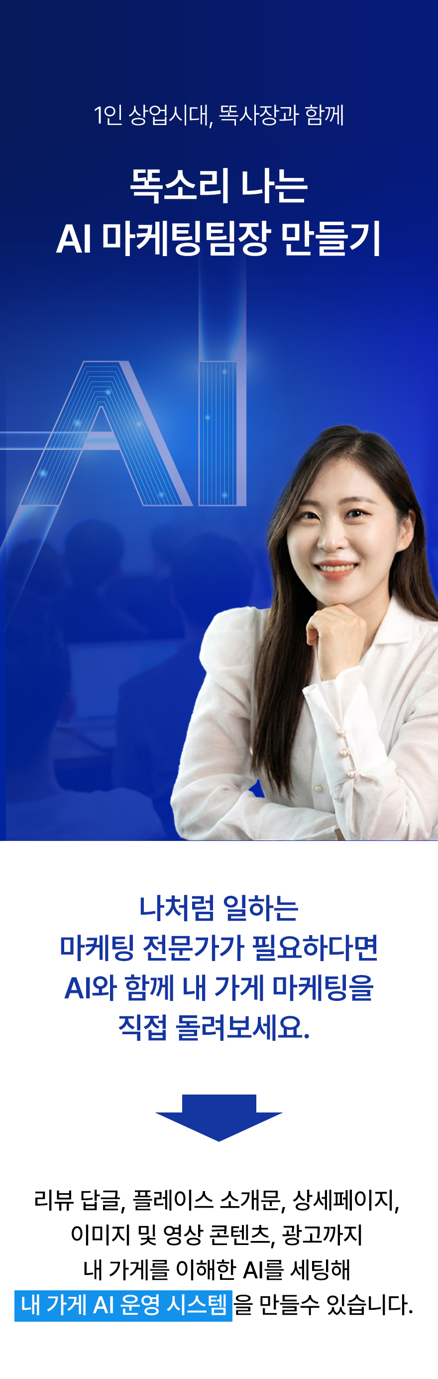 AI에게 내 가게를 학습시키고, 내 상황에 맞는 마케팅 파트너로 세팅하면 됩니다.