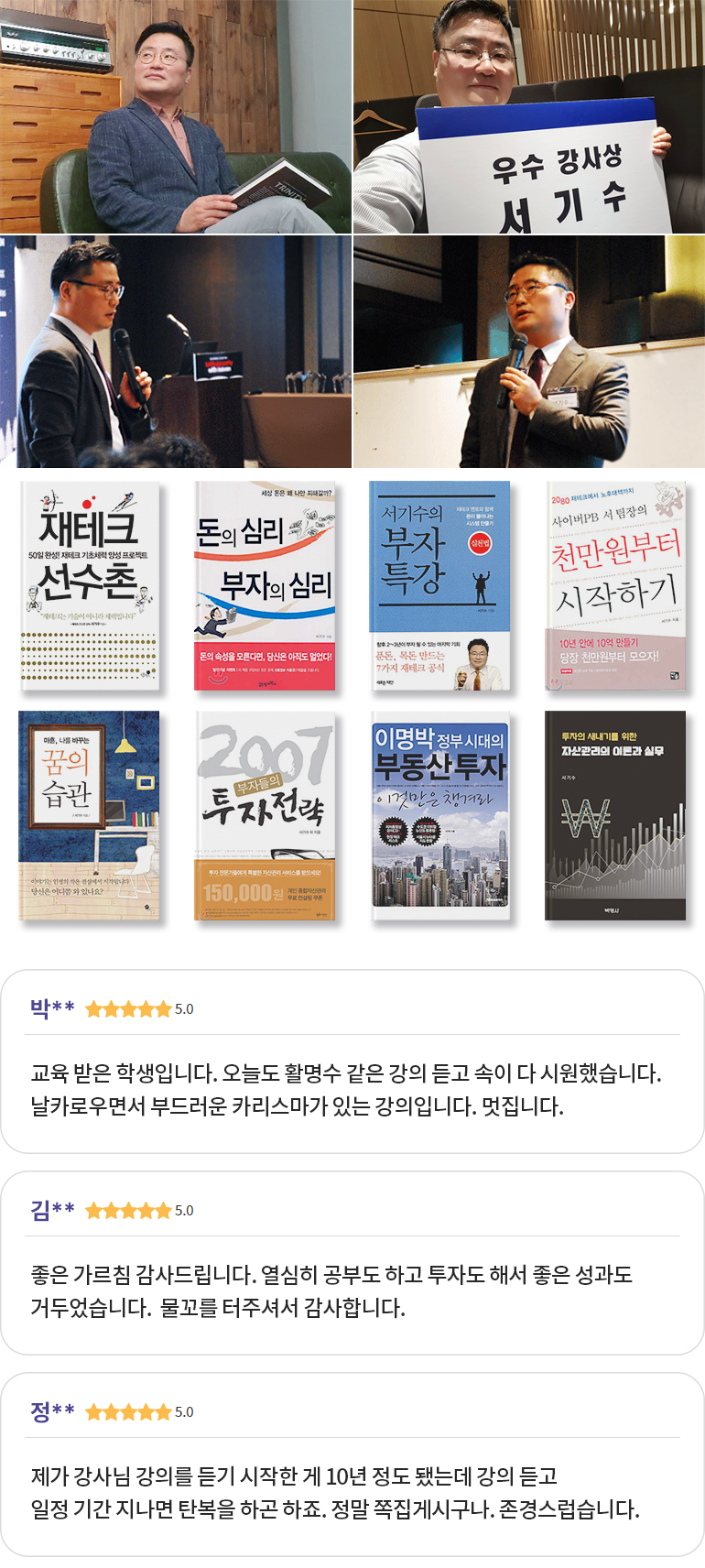 그런데 제가 오랜 시간 대학에서, 대기업에서, 그리고 수많은 강의 현장에서 만난 분들로부터 느낀 점이 있습니다. 누구든지 마음먹고 배우면 ‘나에게 꼭 맞는 맞춤형 부동산 전문가’가 될 수 있다는 것이었습니다. 만인을 위한 부동산 전문가는 이 세상에 없지만, 스스로 공부하시면 나만을 위한 부동산 전문가가 되실 수 있습니다. 포기하지 마세요. 제가 여러분의 등을 밀어 드리겠습니다. 어려운 부동산 용어부터, 디지털을 활용해 부동산 시장을 앞서 보는 방법까지 차근차근 가르쳐 드리겠습니다. 이 기회에 저와 함께 ‘나를 믿고 투자하는 근육’을 키워보시면 어떨까요?